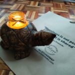 Hand-carved 10-inch brown turtle soapstone candle holder, a unique blend of artistry, functionality, and Kenyan heritage.