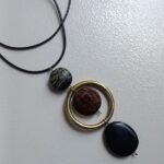 A handcrafted statement necklace featuring layered earth-toned beads and a bold gold-tone circular accent, designed to bring balance, texture, and modern organic elegance to your look.