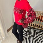 The Red Ankara Pattern Long Sleeve Cotton T-Shirt for Women combines vibrant color with cultural artistry. Made from soft, breathable cotton, it features striking Ankara pattern sleeves that add personality and flair to the rich red body.