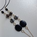 The Zebra Noir Chain Necklace is a bold expression of contrast and contemporary design. This handcrafted necklace features a layered vertical composition of deep black oval beads, glossy dark marbled accents, and distinctive zebra-pattern resin beads that introduce texture and visual rhythm.